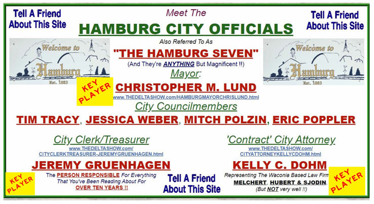 For Nearly FIVE YEARS, I've Been 'Digging In' To Some Of The LESS THAN HONORABLE 'BEHAVIORS' and GROSS MISCONDUCT Of The PUBLIC OFFICIALS Of The CITY OF HAMBURG (Minnesota), A Small Carver County City Of About 570 Residents, Located Forty-Five Miles Southwest Of The Minneapolis-St. Paul Metropolitan Area. As You Peruse My Many